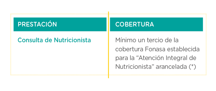 De esta manera, y de acuerdo a lo instruido por la Superintendencia de Salud, todo beneficiario que presente sobrepeso u obesidad según criterios de Índice de Masa Corporal (IMC) tendrá derecho a la cobertura individual por atención cada vez que haga uso de la Consulta de Nutricionista. La primera consulta de nutricionista, dentro del año calendario, deberá ser indicada por el médico tratante.